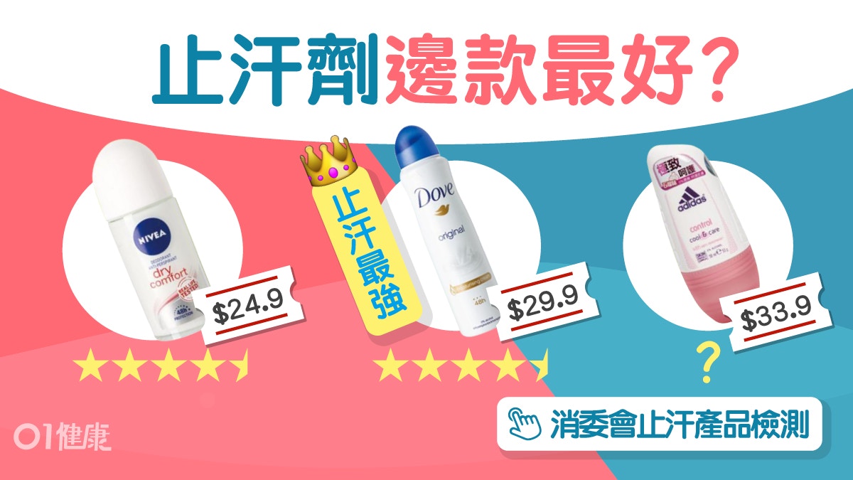 7款滾珠裝止汗劑產品中,nivea「dry comfort」 及「black & white invisible」 滾珠裝止汗劑同獲4分,止汗表現不俗;惟dove「original」 滾珠裝止汗劑及「 艾詩 」滾珠裝的止汗表.